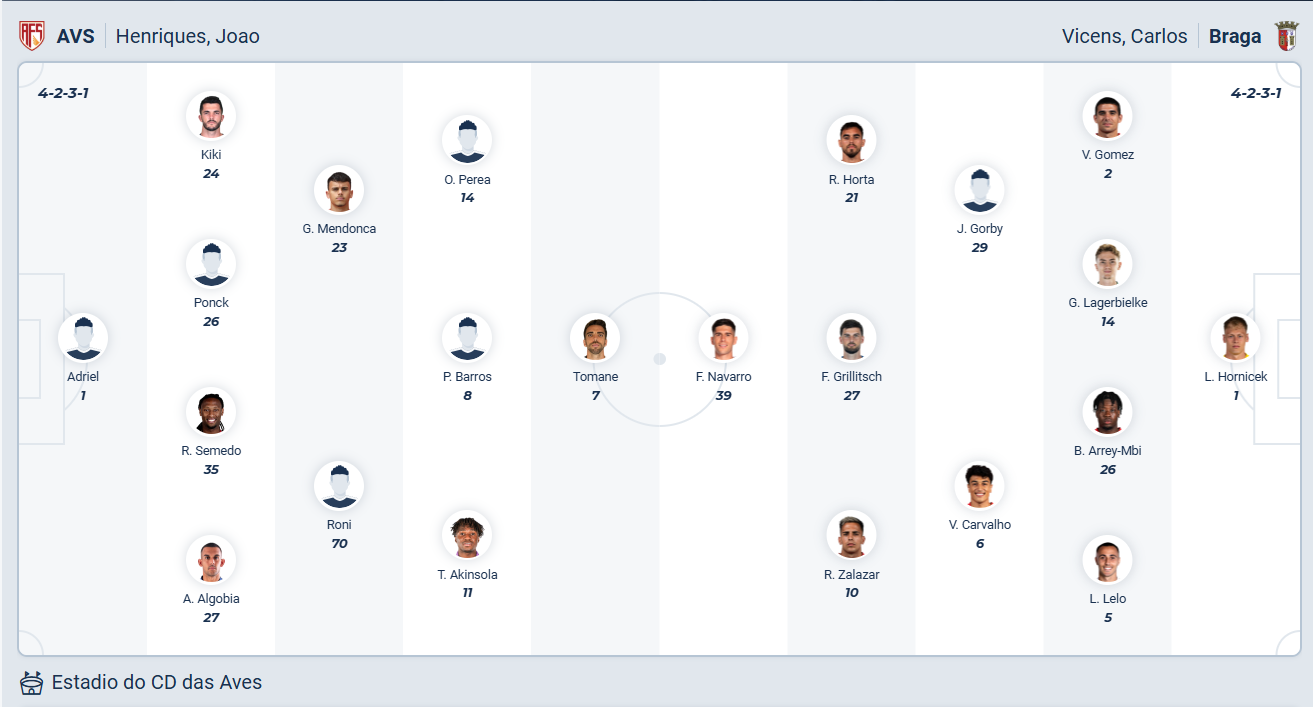 Braga đứng thứ tư mùa trước, sau 3 đội bóng hàng đầu của Bồ Đào Nha, mùa giải này họ cũng đang đứng thứ tư nhưng khoảng cách điểm với 3 đội dân đầu là rất xa. Đội bóng của HLV Carlos Vicens vừa thoát khỏi chuỗi trận không thắng bằng 2 chiến thắng ở 2 vòng gần nhất và họ cần tiếp tục duy trì điều này để ít nhất giữ được vị trí thứ 3 hiện tại của mình. Chỉ phải đến làm khách trên sân của đội cuối bảng AVS là cơ hội tốt để Braga có thêm một chiến thắng nữa và nhiều khả năng họ sẽ có 3 điểm trọn vẹn.