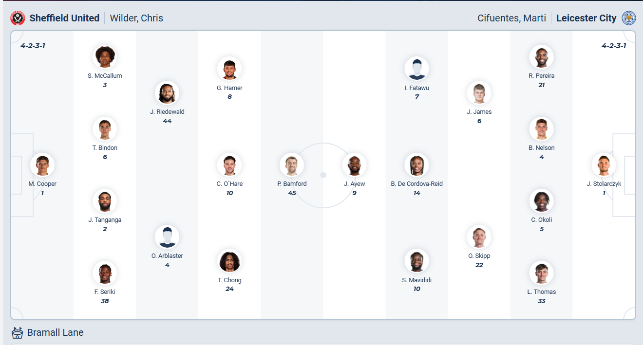 Sheffield United chút nữa đã giành vé thăng hạng mùa trước, họ thất bại trong loạt trận play off dù đứng thứ 3 mùa giải trước. Mùa giải năm nay đội bóng của HLV Chris Wilder quyết tâm làm tốt hơn nhưng mọi thứ đang diễn ra vô cùng tệ hại, các cầu thủ Sheffield United chơi rất tệ khi đang đứng thứ 19 trên bảng xếp hạng. Giờ đây họ thậm chí còn có nguy cơ xuống hạng nếu không chơi tốt hơn ở các trận đấu sắp tới, sau khi để thua ở vòng đấu trước, Sheffield United cần một chiến thắng ở vòng 24 này. Tuy nhiên trước đối thủ mạnh như Leicester thì xem ra mục tiêu đó khó thành hiện thực.